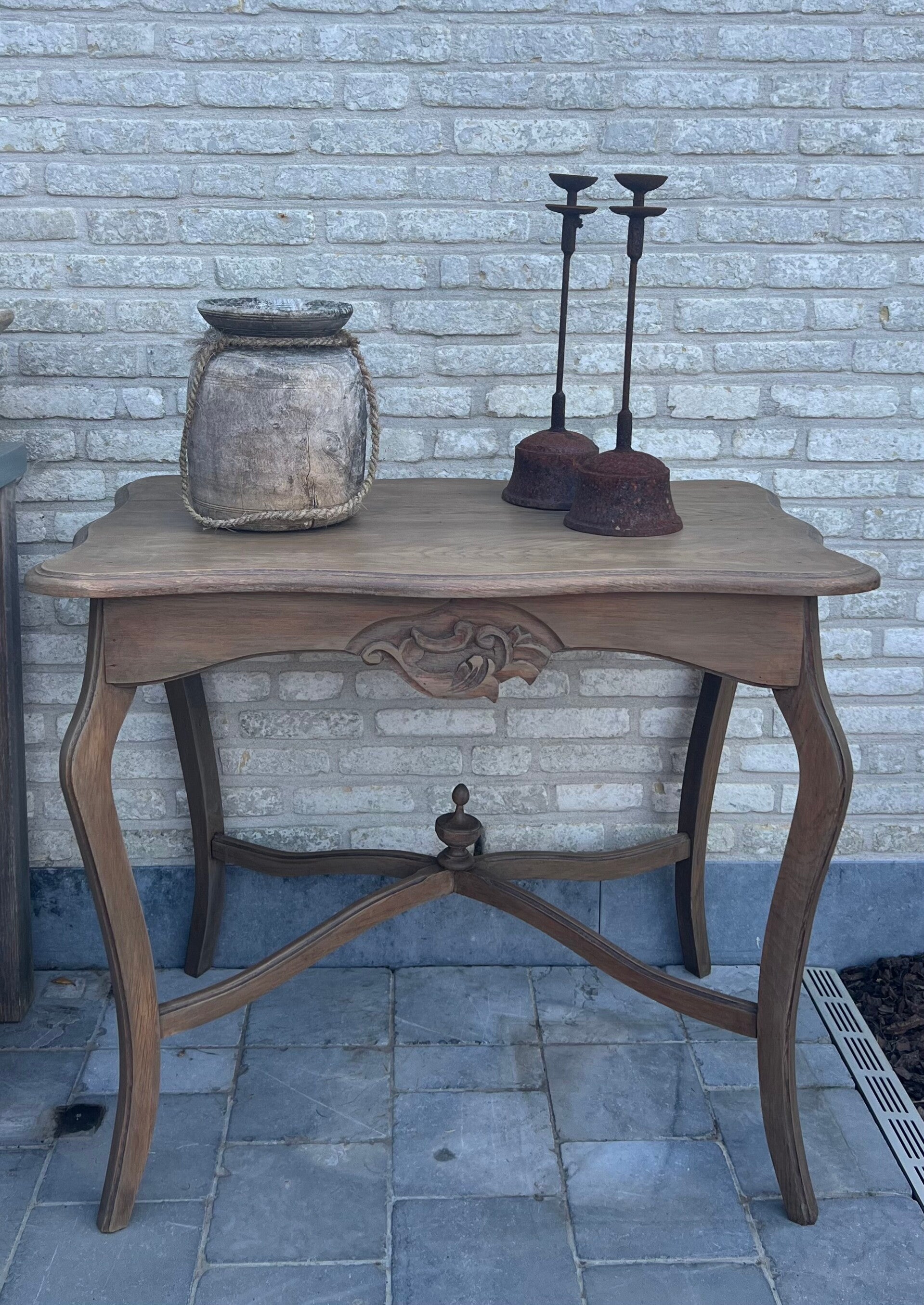 Oudhouten antiek bijzettafeltje met een mooie naturelle doorleefde patine.
