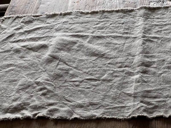 Stoere tafelloper uit 100 % stonewashed grof linnen is afgewerkt met franjes aan alle zijdes
